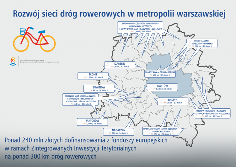 a Plan for the development of roads for vehicles-it is the result of joint work of the bodies of local self-government of the Mazovian Voivodeship, the local authorities in the capital and the suburb municipalities. In the competition there were selected 13 projects for implementation. The planned investment is mainly the construction of new and upgrading of existing Bicycle paths in Warsaw and 34 neighbouring municipalities.